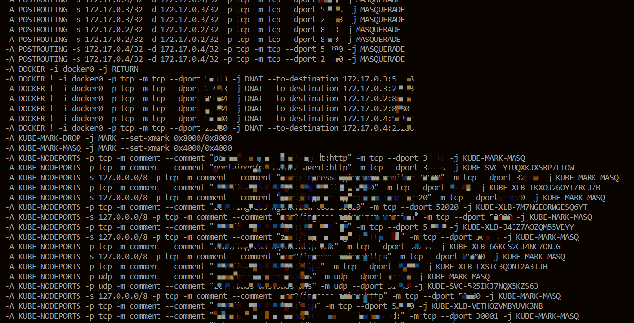 iptables是用于检查,修改,转发,重定向或者丢弃 IP 数据包的,正如它名字中所带的table,主要由5张表组成: mangle表主要用于包数据的修改,比如修改TOS字段或者其它类似字段。注意,我们不建议在这个表上做包过滤,或者NAT的功能。mangle表的支持如下目标:1. TOS 2.TTL 3.MARK 4.SECMARK 5.CONNSECMARK. TOS:这个target是用于设置或修改数据包的 Type of Service 字段。这个字段在网络设备上不一定完全实现,因此不建议在广域网里设置它。 TTL:数据包的TTL字段,有些限制宽带接入设备数的宽带运营商会通过TTL字段判断你是否通过自己的路由器来实现设备网络共享,可以用这个功能来规避运营商的校验。 MARK:这个target比较常用,比如我们正文中k8s就通过这个功能给数据包打标,后面根据打标结果把对应的数据包丢弃;我们也可以将这个功能同ip rule配合起来,实现策略路由功能。 SECMARK和CONNSECMARK在08年后已经迁移到security表,mangle表可能还保留对这两个目标的支持,以满足兼容性。 注意,TOS和TTL只在mangle表有效,其它表不支持这两个目标。