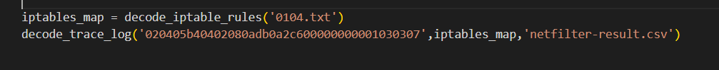 跟踪日志以json方式输出,包含如下字段: timestamp: 时戳 dvc: 配置文件中定义的设备名 raw.: 数据包相关信息,比如type就是硬件类型信息。 oob.: 带外信息,主要是一些非数据包自带的元数据。 action: 按照文档的意思应该是输出包的匹配规则,但是实际上只是输出input里的numeric_label,这个值为0,就是blocked,为1就是allowed,可能不具有参考意义 ip.: ip头部相关信息 src_port/dest_port: 源、目标端口 tcp.: TCP头部相关信息 src_ip/dest_ip: 源、目标ip地址 mac.*: 数据链路层信息