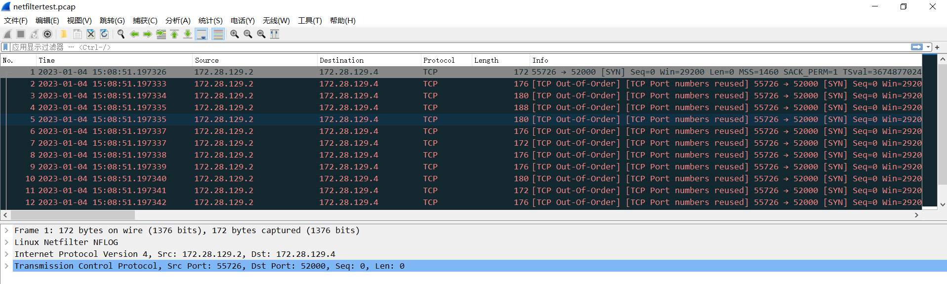 "time:2023-01-05T11:04:26.620815+0800 source_ip:172.28.129.2 dest_ip:172.28.129.4 src_port:55768 dest_port52000 prefix:TRACE: raw:PREROUTING:policy:3 mark:0 OPT (38576172.28.129.2172.28.129.41889216384557685200065878990447472)"