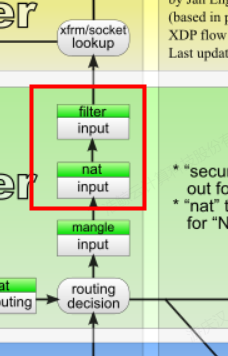 我们前面说了,DNAT和SNAT具有不同的优先级,因此wikimedia上的这个数据流转图在INPUT链上的顺序是不对的,INPUT上是SNAT,而SNAT的优先级是低于filter的。